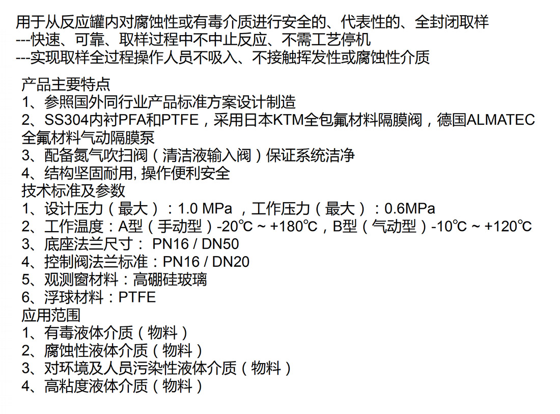 反應(yīng)罐及容器在線取樣裝置